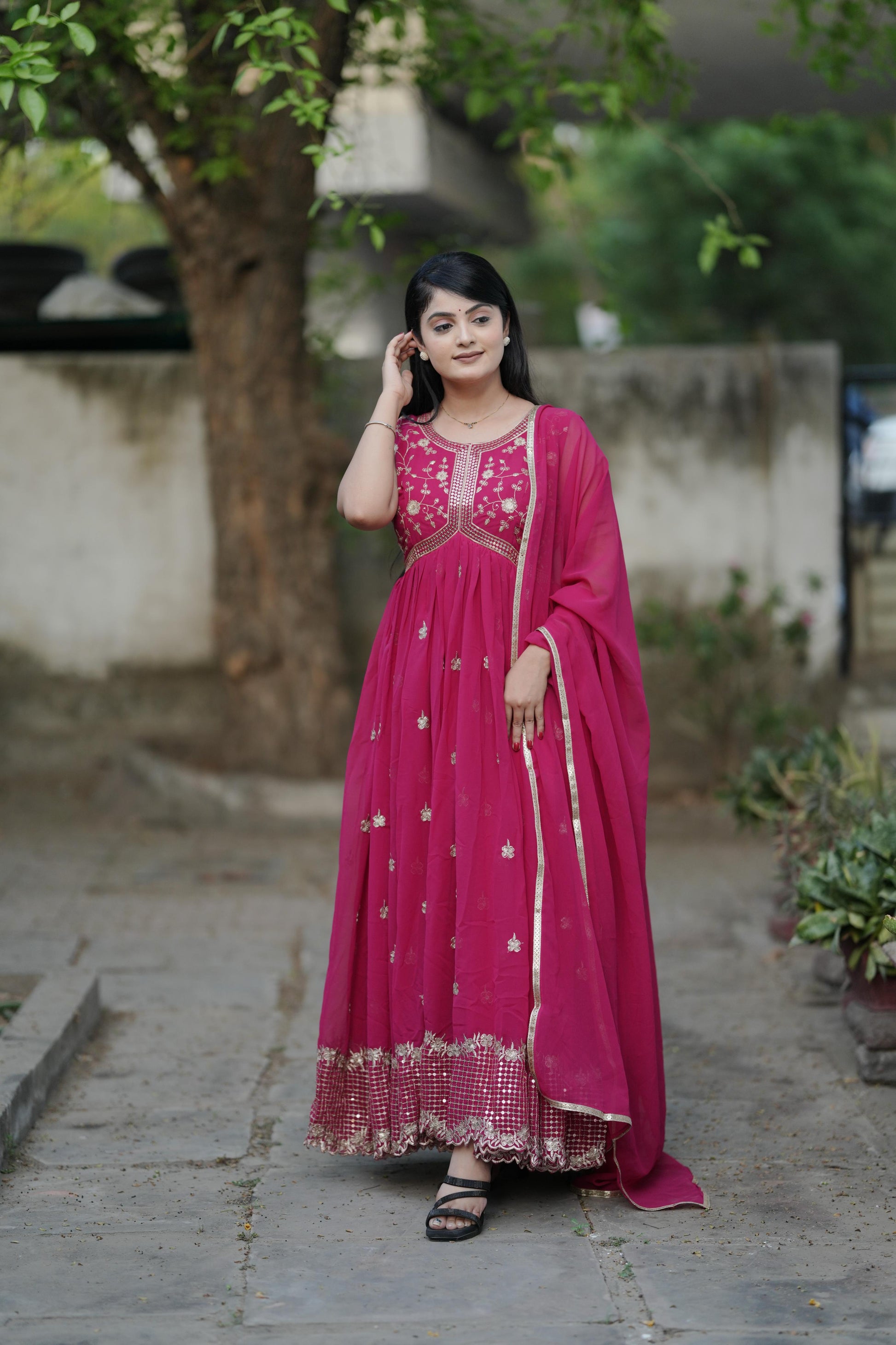*Gorgette Embroidery With Sequnce Work Gown*👜
