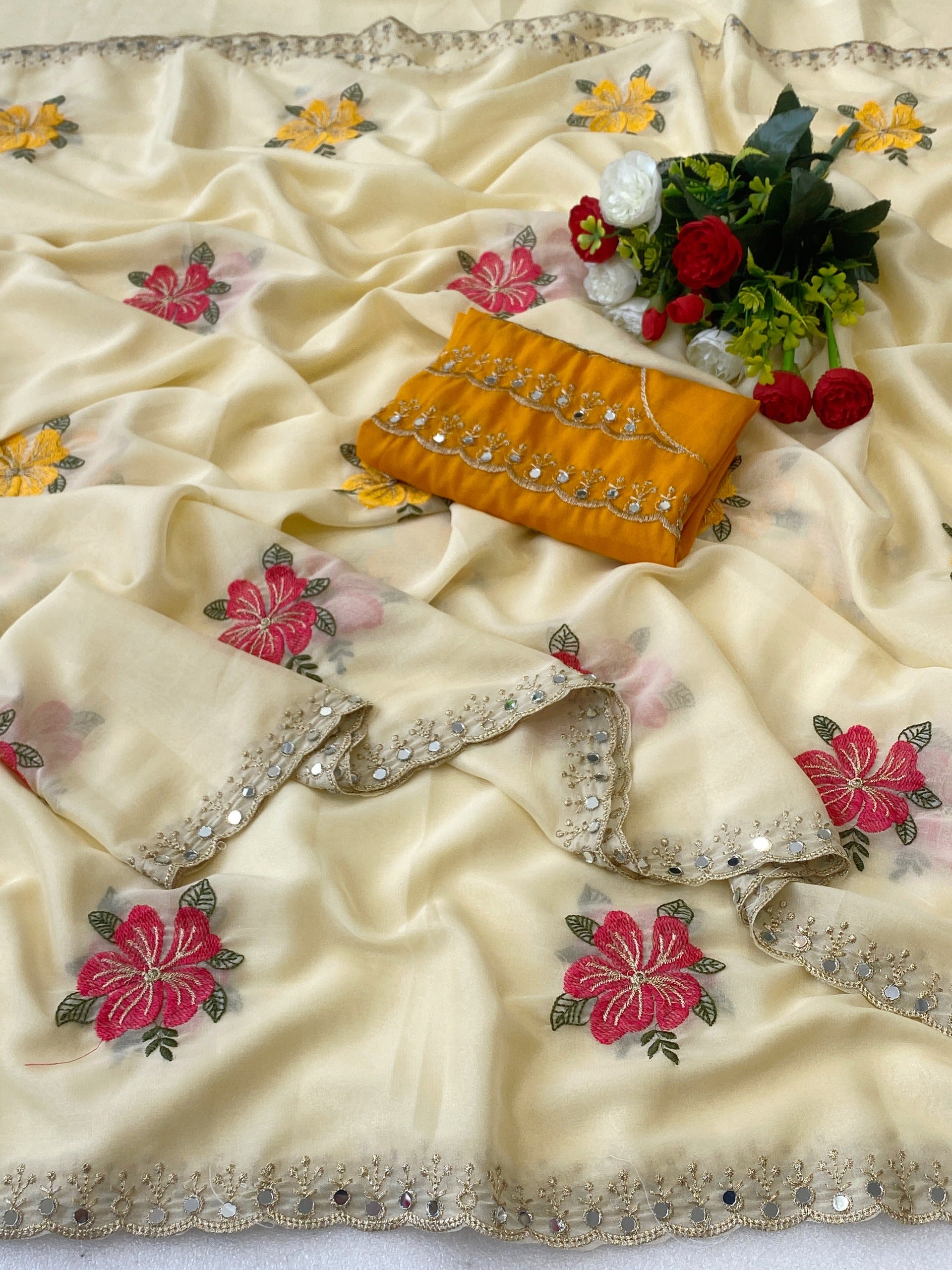 Work: Floral Thread Embroidery with Real Mirror Work